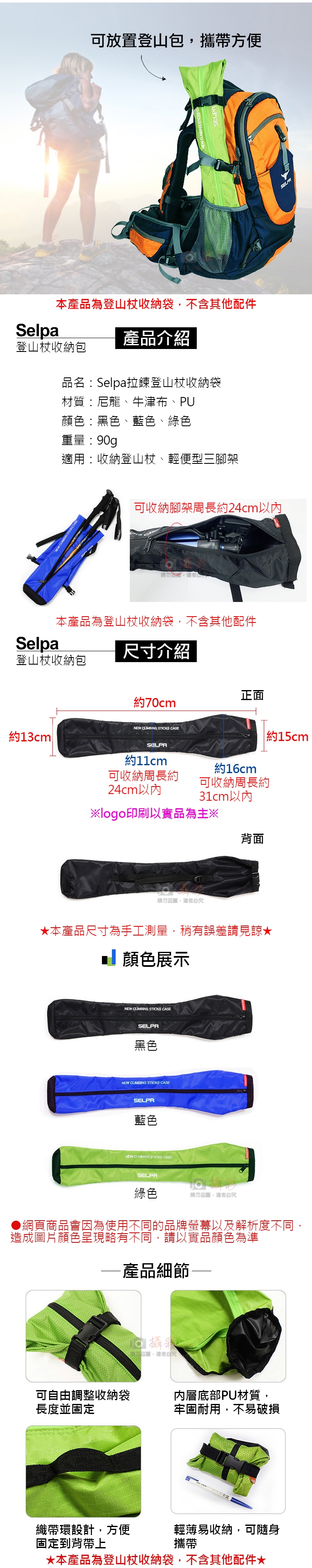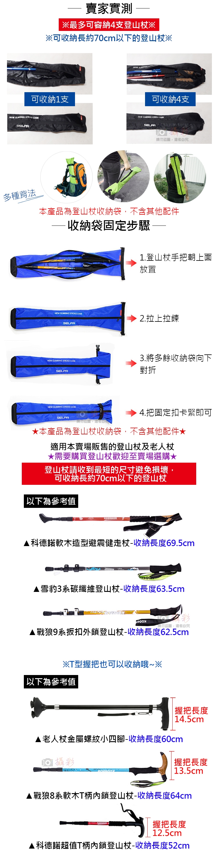 4.本賣場販售的登山杖皆可使用登山杖收納袋,折疊登山杖、T型握把也可裝
