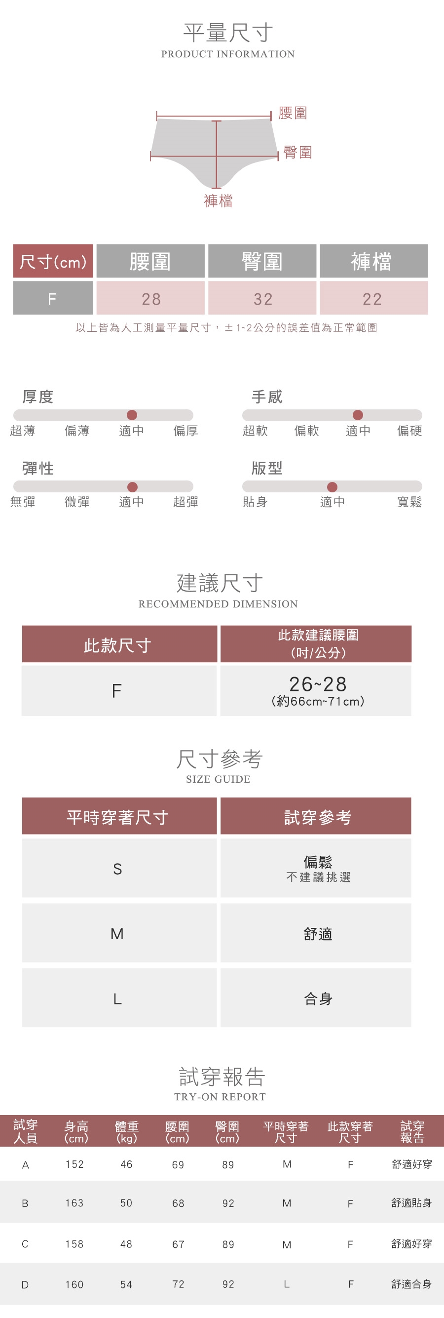 ◆本尺寸對照表標示僅供參考,實際尺寸以實品為準。