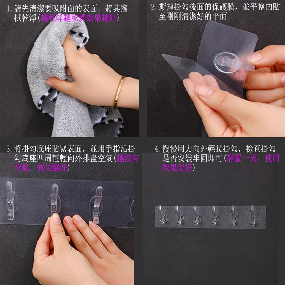 1.請選擇適當之掛勾場所,請勿掛易碎及貴重之物品,避免掉落,及砸到其他物品或傷人。