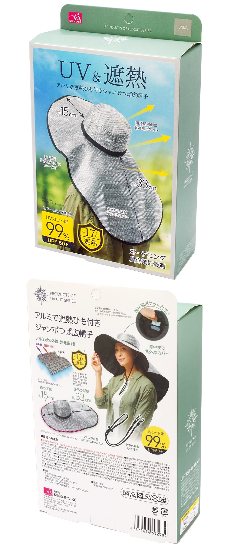 ●【品名】日本NEEDS超輕超長66cm鋁箔UPF50+防曬帽遮陽帽692984(超寬帽簷15-33cm;可放保冷劑;附綁帶)隔熱帽子,適園藝務農種田戶外登山露營