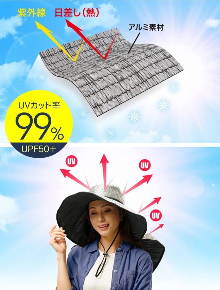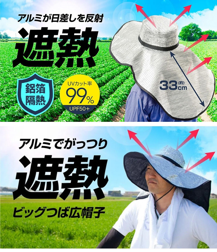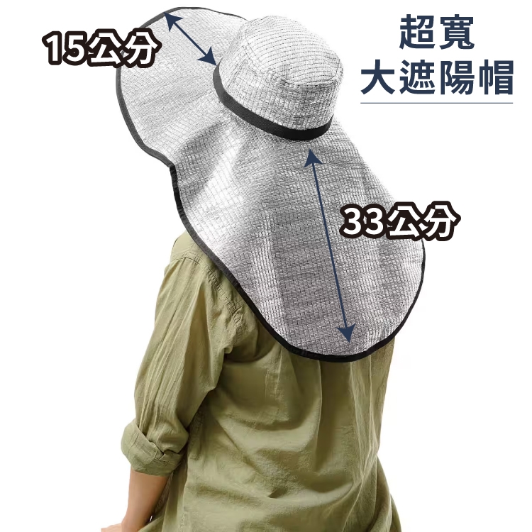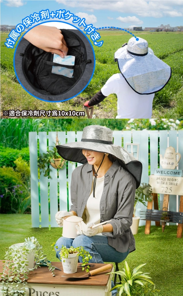 為了解決戶外務農時的困擾,減少戶外活動上的不適,針對隔熱性、抗UV、涼感這三大需求一併整合所推出的超輕量寬幅鋁箔遮陽帽!