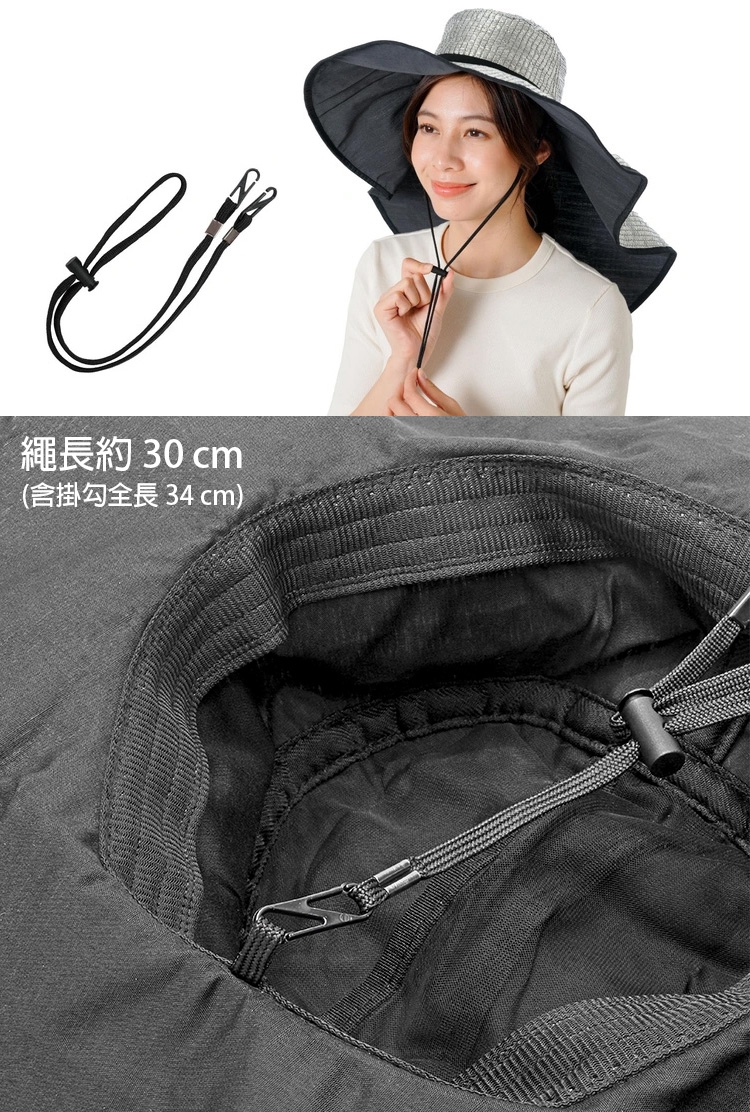 ●附不怕風吹的綁帶,其長度亦可調整。