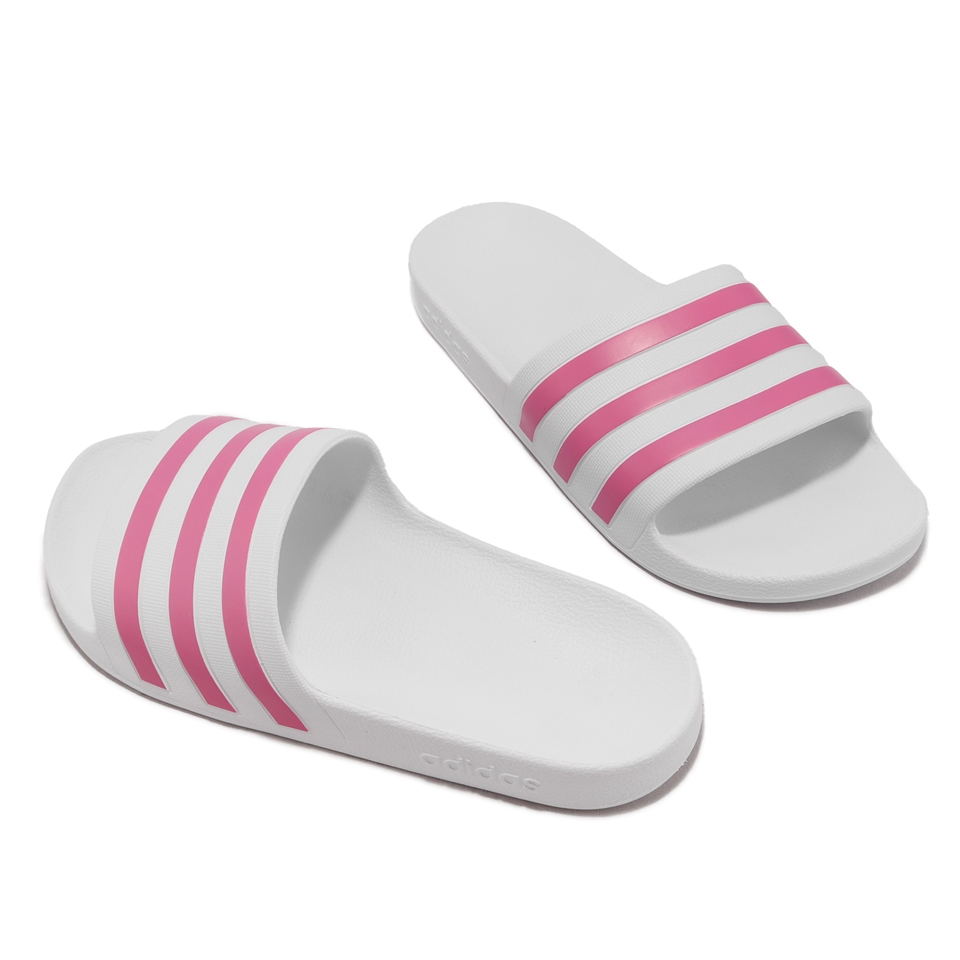 * 經典的休閒涼鞋,以全白鞋面搭配繽紛粉色調設計,搭配三線 Logo ,增添識別度。