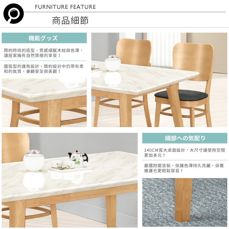 採用天然原石桌面,質地堅固耐用,讓您清潔只需輕鬆擦拭即可!