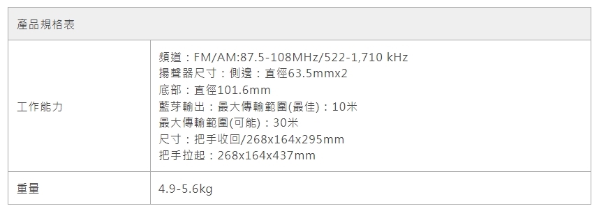 藍芽輸出:最大傳輸範圍(最佳):10米