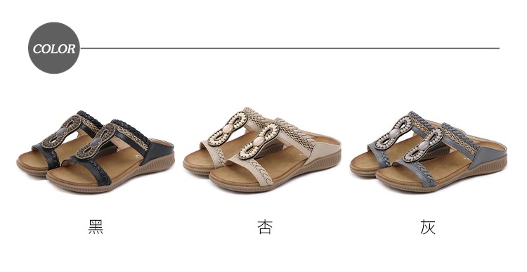 【QUEENA】拖鞋 厚底拖鞋/華麗民族風幾何鋯石拼貼縷空編織造型厚底拖鞋 灰