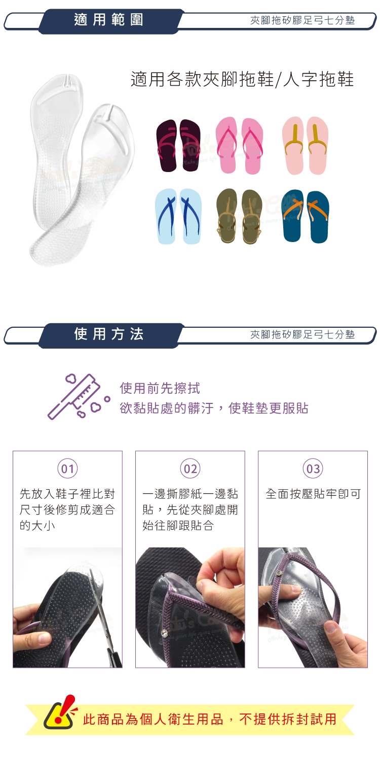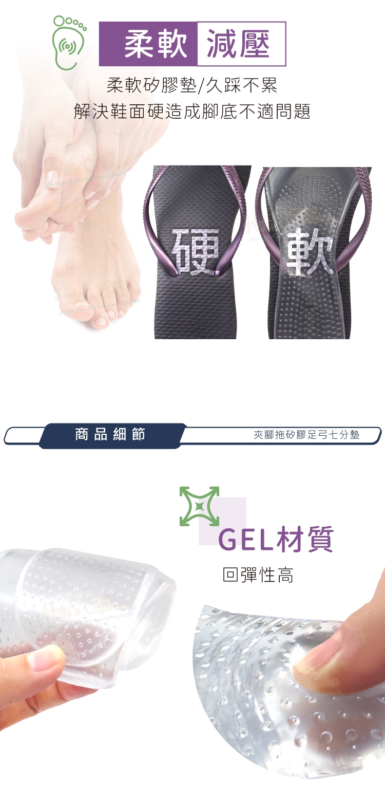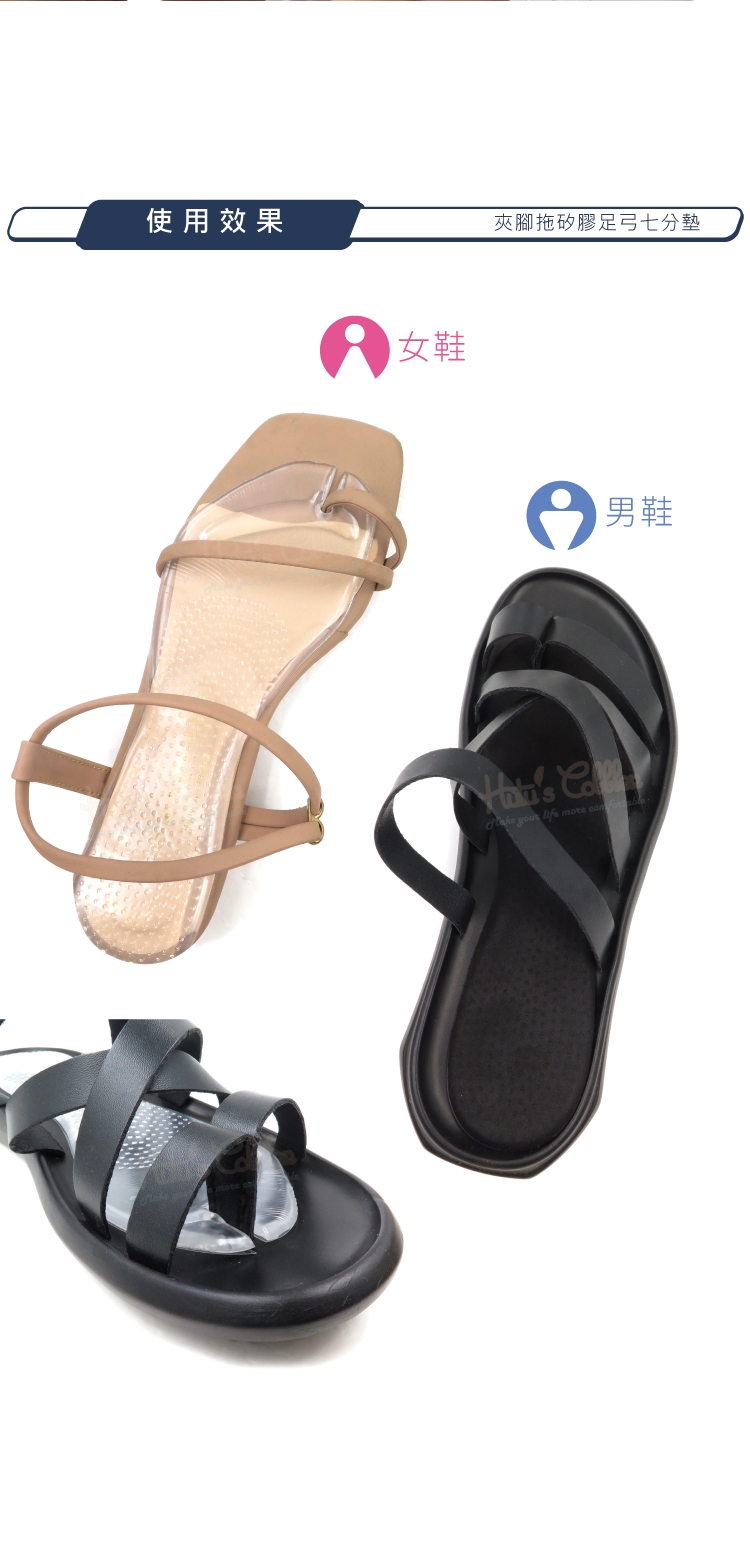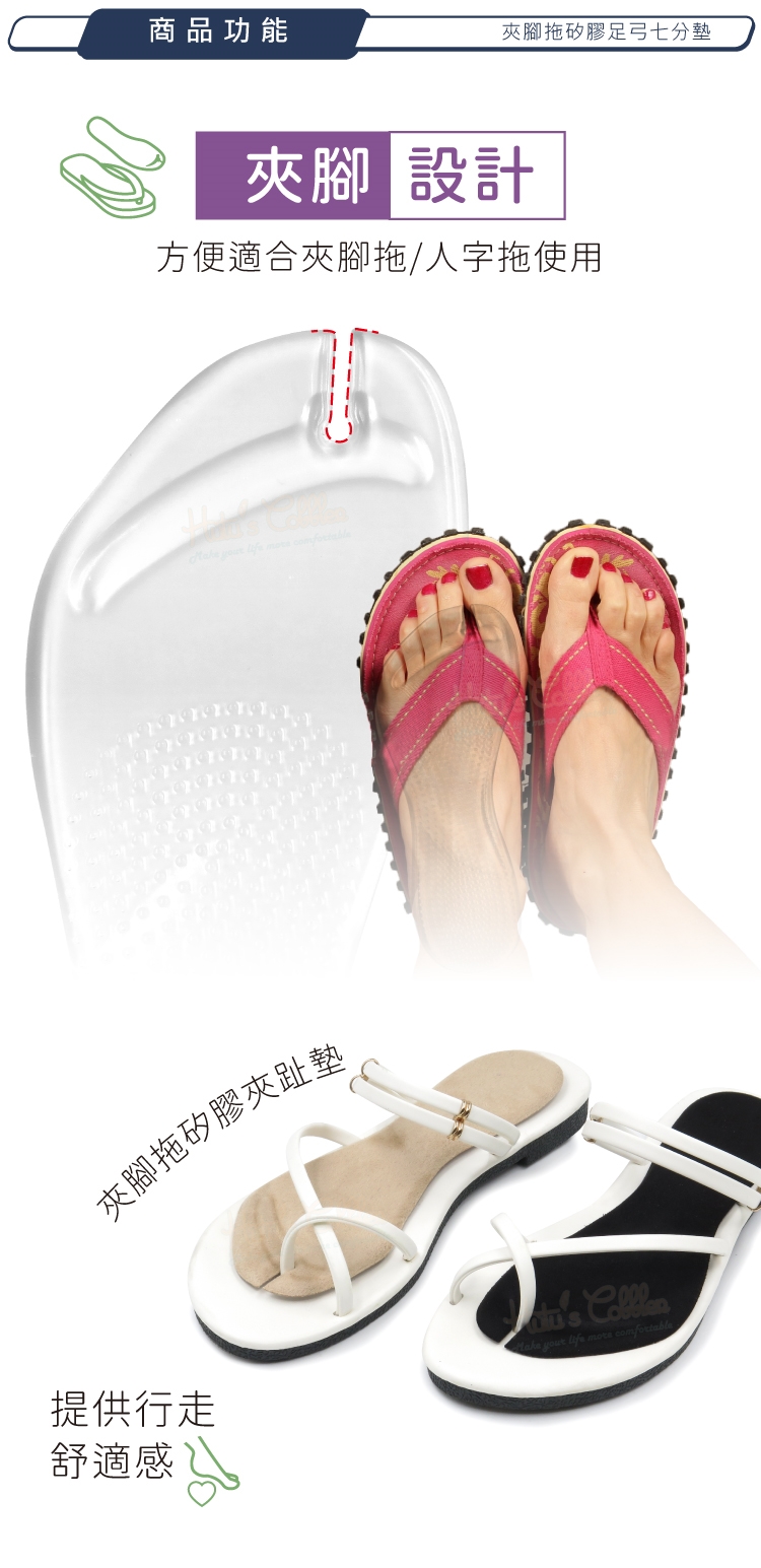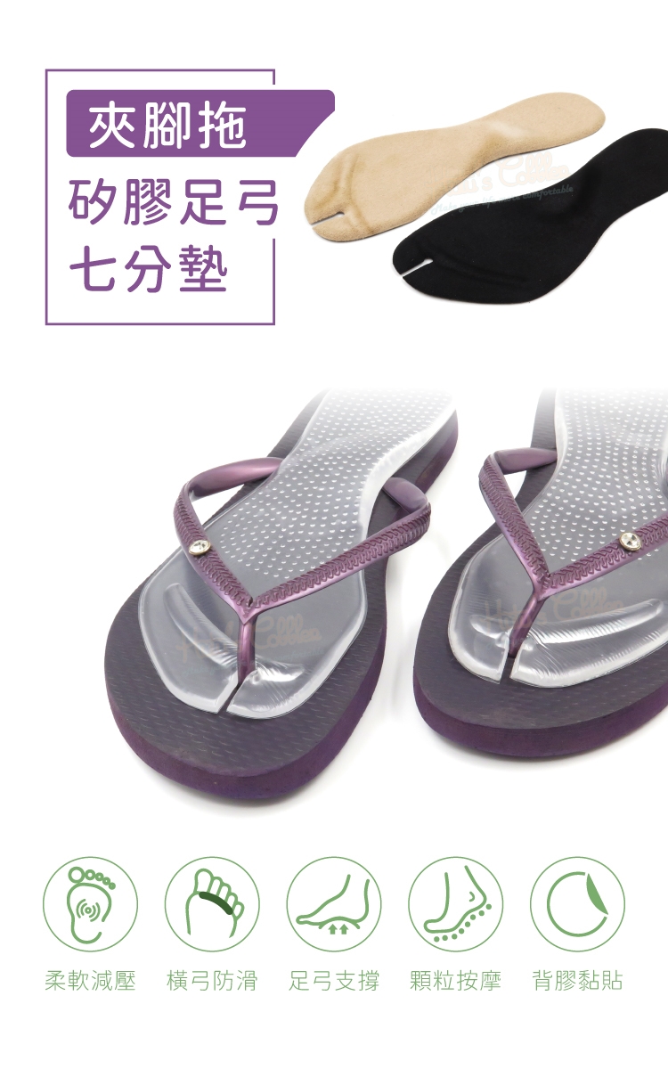 夾腳拖矽膠足弓七分墊特色:
