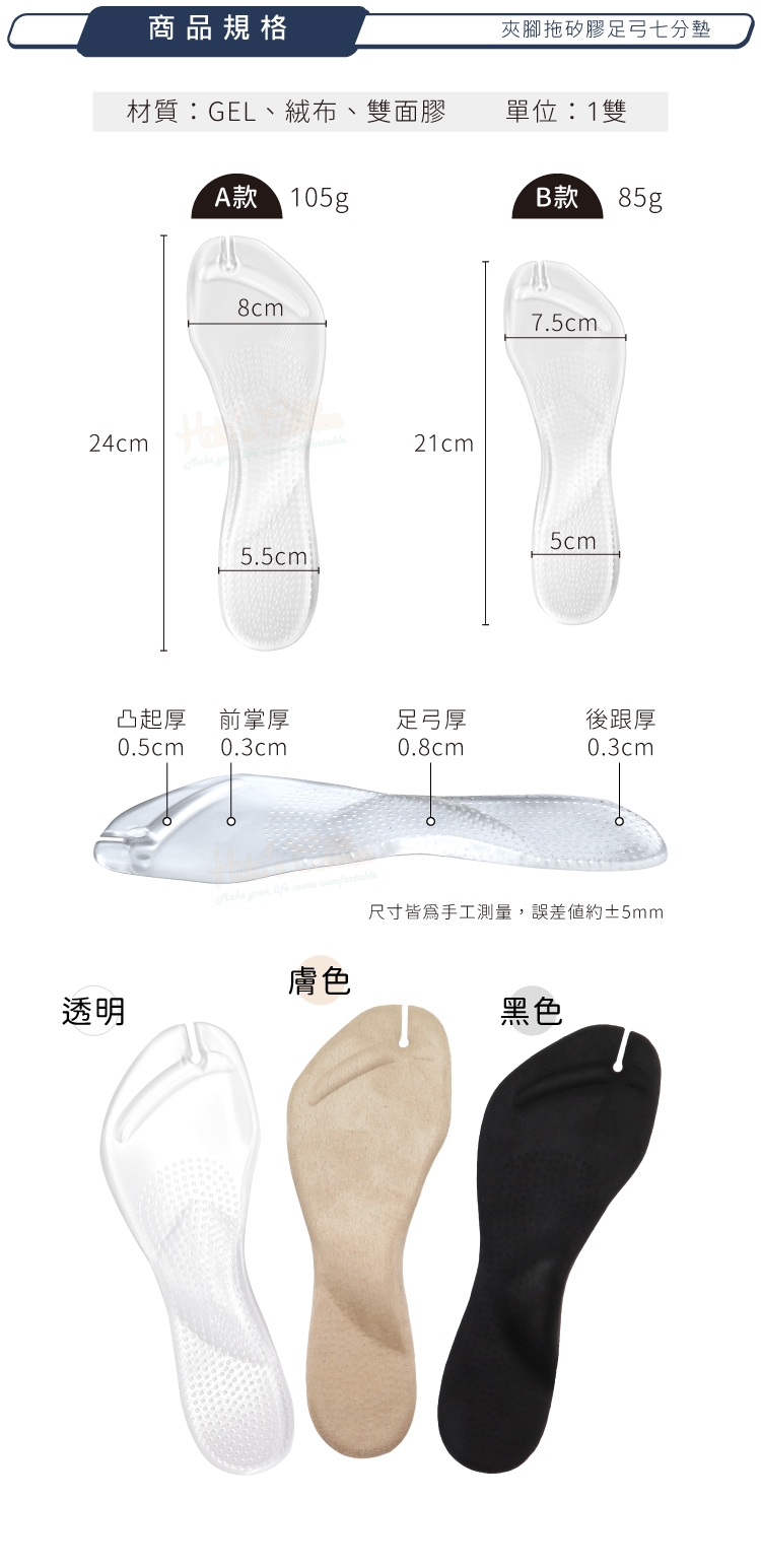 凸起厚0.5cm 前掌厚0.3cm 足弓厚0.8cm 後跟厚0.3cm