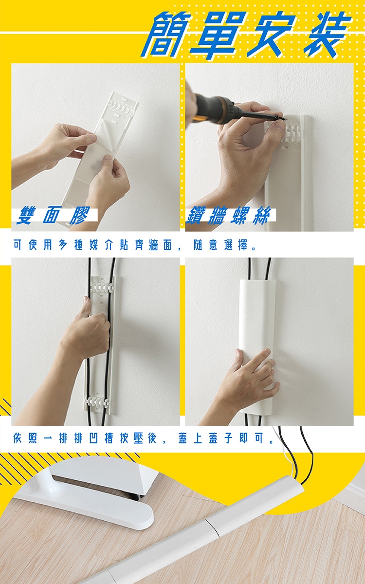 牆壁或地板切可使用,即使碰撞也可保護線材