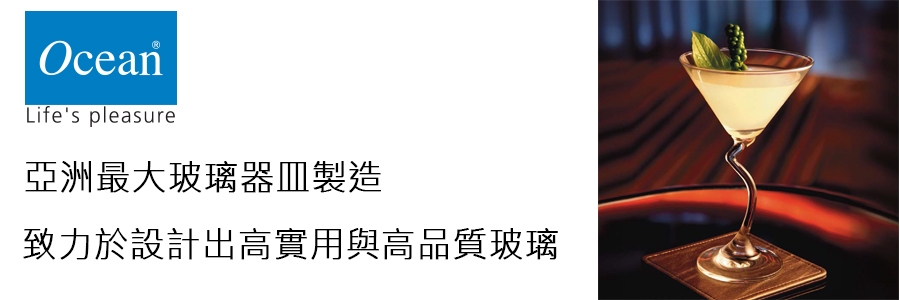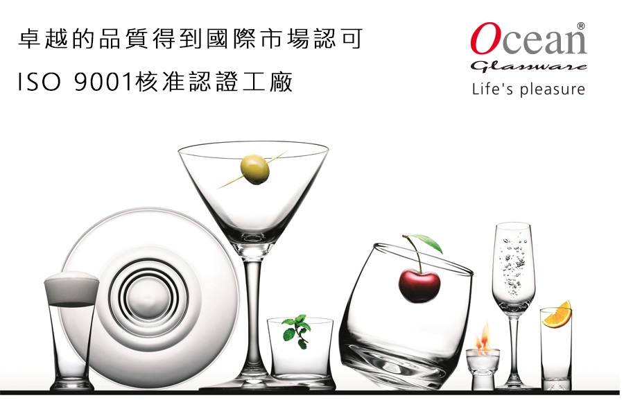 Ocean Glass成立於1979年,為亞洲最大玻璃器皿製造商之一,為各行各業提供多樣化的優質玻璃器皿與服務。Ocean Glass結合日本Toyo-Sasaki Glass的專有知識與德國工業機台的製造技術,致力於設計開發出兼具高實用和高品質的玻璃器皿。卓越品質廣獲國際市場的讚譽,在世界各地的玻璃器皿製造業中位居舉足輕重的地位,並且取得ISO 9001核准認證工廠資格。經過多年來不斷的技術精進與設備更新,至今仍是擁有最先進製程的玻璃器皿工廠之一,始終領先於技術尖端。