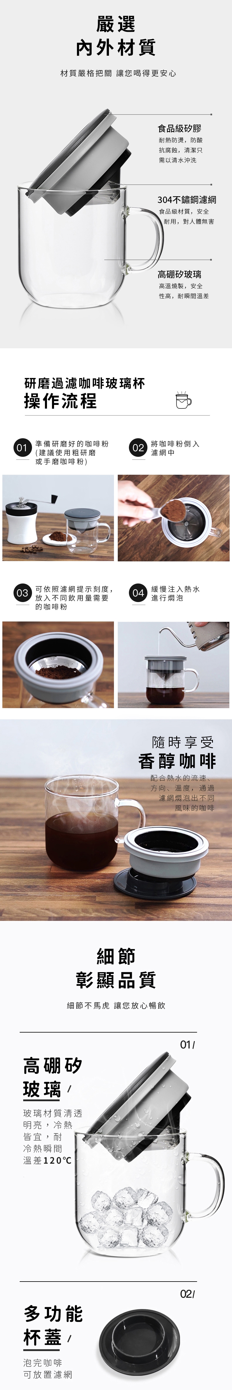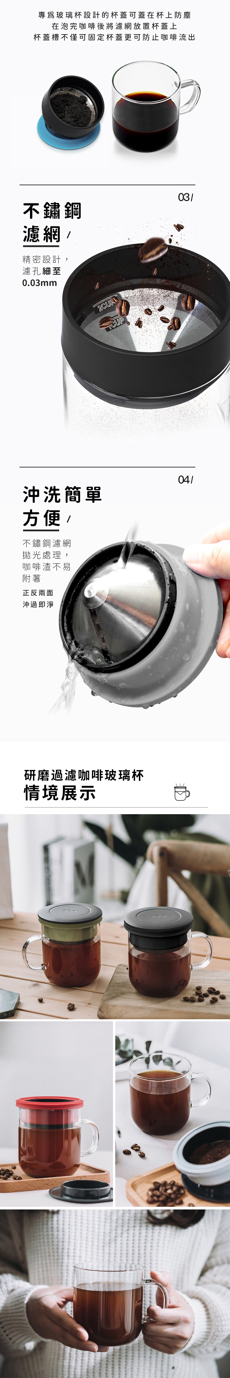 1/ 一體化設計的濾杯與玻璃杯,方便收納