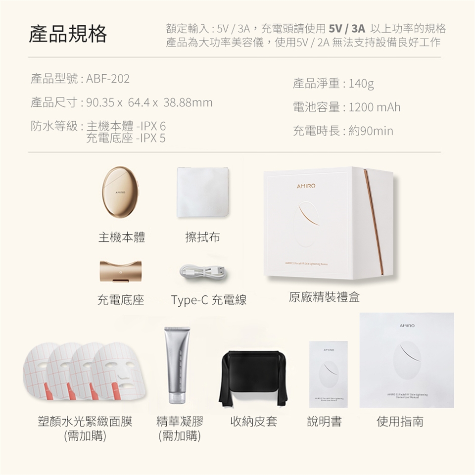 品名:【AMIRO】S1 時光機黃金點陣美容儀(贈專用凝膠1條+贈專用塑顏面膜4片)