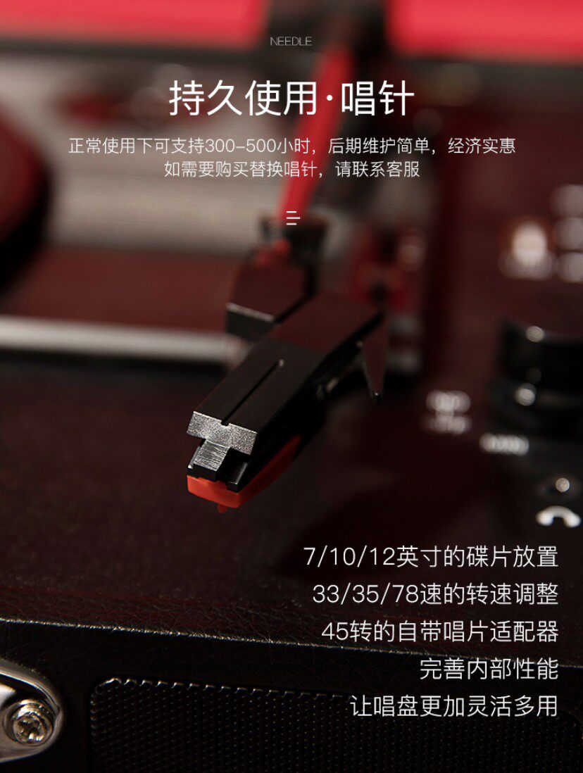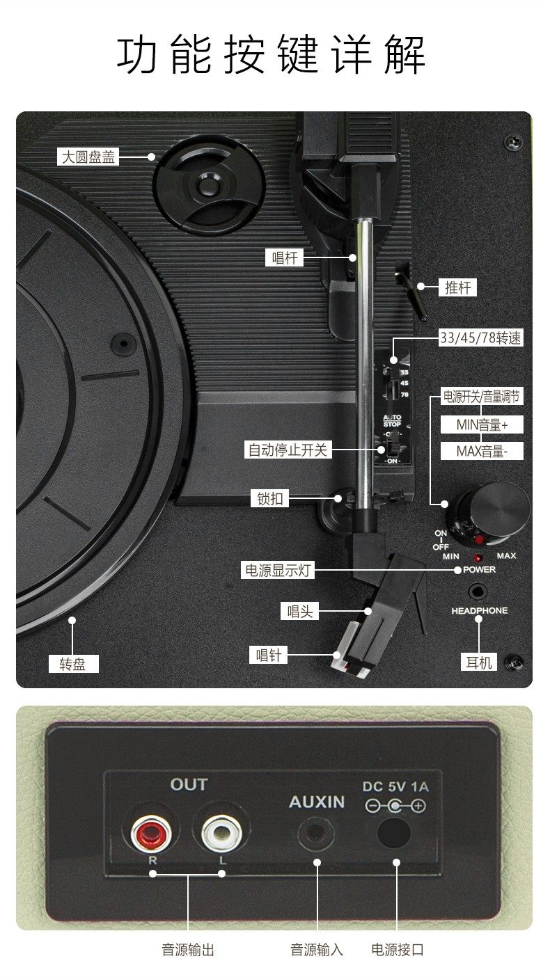 ***黑膠唱片款和藍牙U盤款均是插電式的,充電款和升級款內置電池可充電
