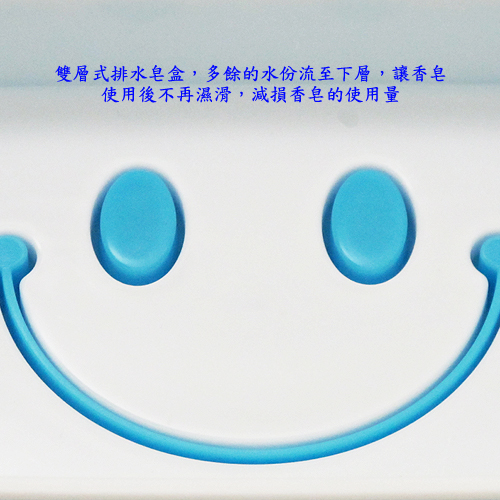 ■雙層式排水皂盒,多餘的水份流至下層,讓香皂使用後不再濕滑,減損香皂的使用量。