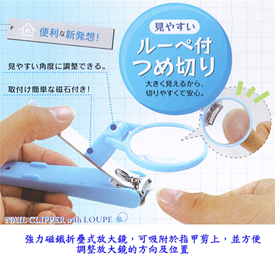 ■強力磁鐵折疊式放大鏡,可吸附於指甲剪上,並方便調整放大鏡的方向及位置。