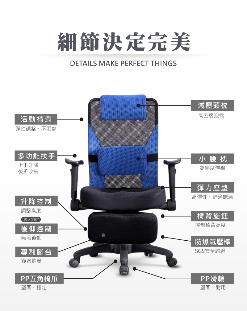 頭枕材質:高密度泡棉+透氣網布