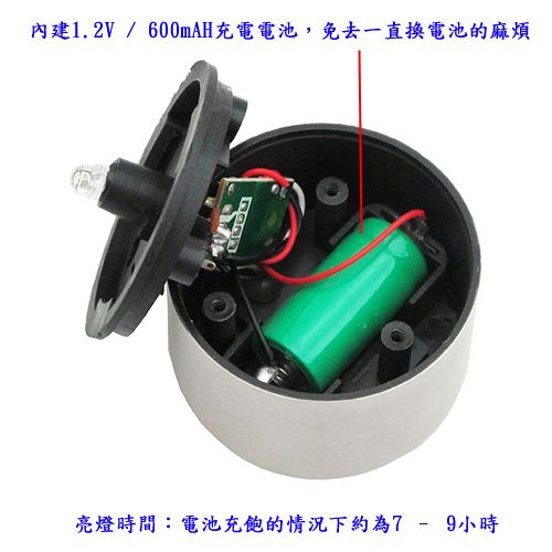 ■內建1.2V / 600mAH充電電池,免去一直換電池的麻煩,節能環保。