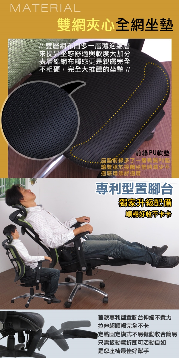 ◆專利伸縮置腳台,新型專利收合角度改善舊型會卡到腳的問題,伸展時操作簡便不費力,休息時可讓雙腳達到完全舒展