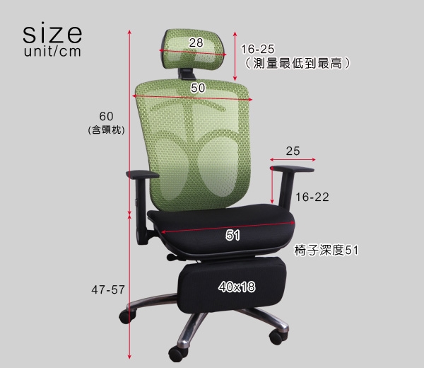 ◆椅背使用特級透氣網布,展現透氣不悶熱,符合人體工學,更適合長時間坐椅的您,遠離腰痠