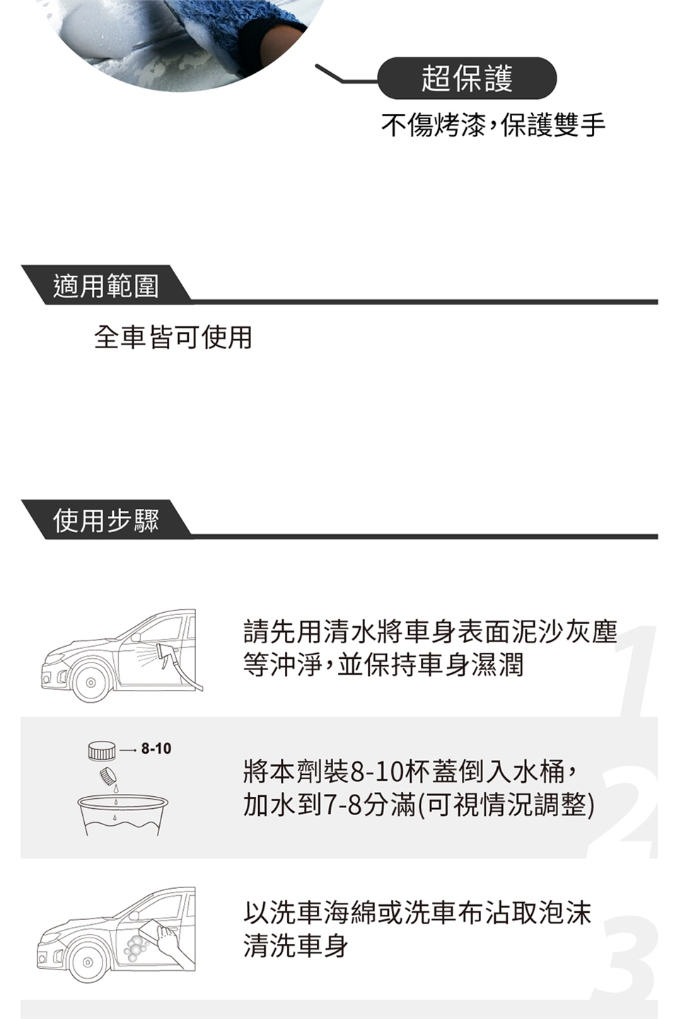 1.請先用清水將車身上的泥沙灰塵沖洗乾淨.