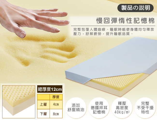 (1)鋪在舊床墊上即可將床墊升級使用。
