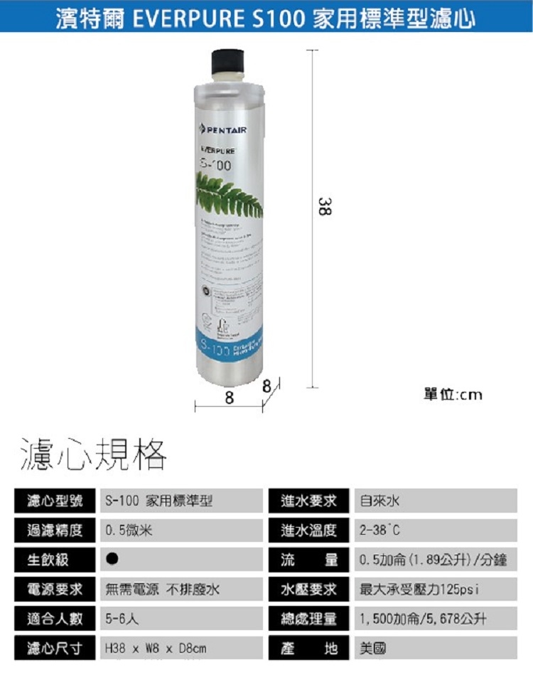 有效濾水量:1500加侖/5678公升 ( 視當地水質狀況而定 )