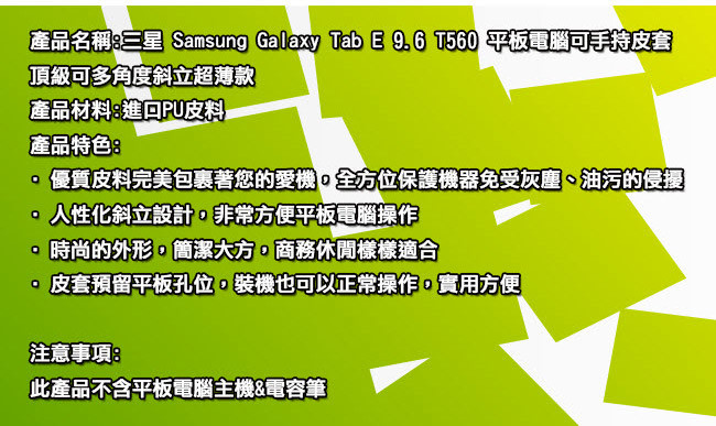 三星 SAMSUNG Galaxy Tab E 9.6 T560 專用頂級薄型平板電腦皮套 保護套 可手持帶筆插