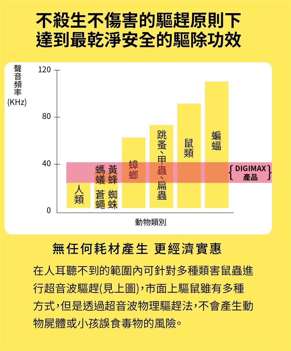 ◎使用驅鼠蟲器後請配合打理居家環境,減少害蟲可以躲藏的空間,並斷絕食物的供應,將垃圾桶密封及食物收藏到冰箱等地方,害蟲將因驅鼠蟲器的雙重強力驅逐加上食物缺乏而加速離開長期賴以維生的環境,達到快速驅逐的效果。