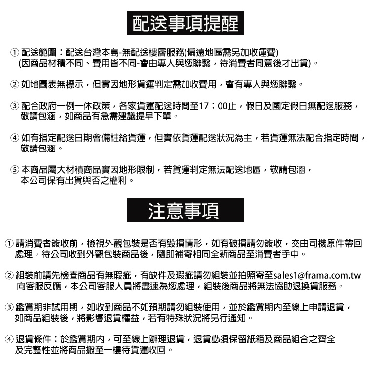 配送範圍:配送台灣本島-無配送樓層(偏遠地區需另加收運費專人與您聯繫)。