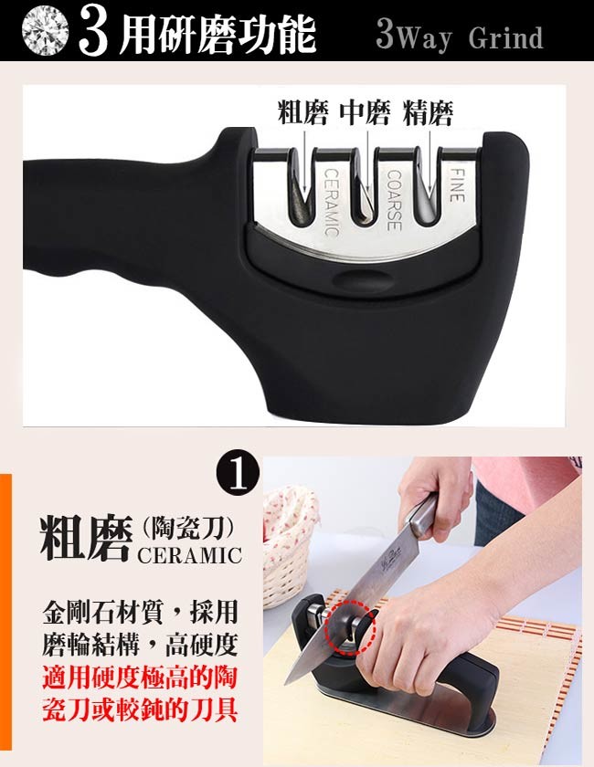 3.磨刀器雖都有安全防護設計,但在操作時還請謹慎 小心
