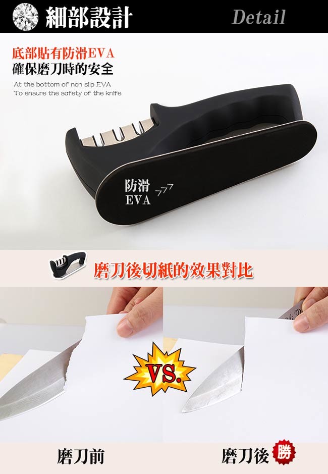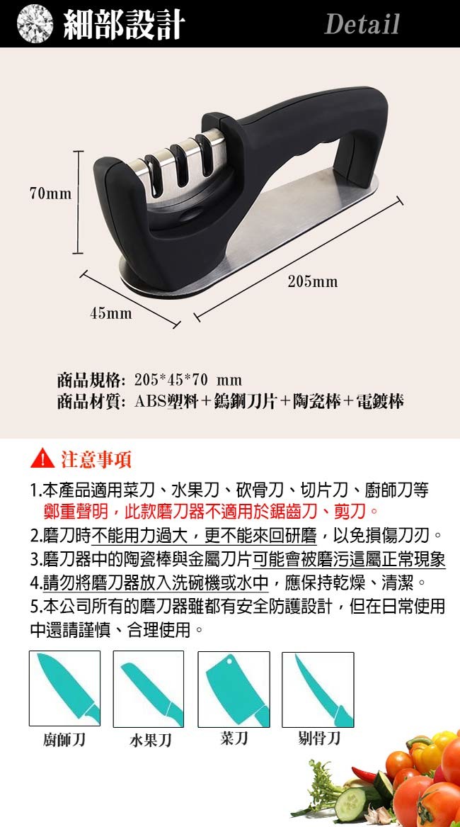 1.此款磨刀器不適用於鋸齒刀、剪刀