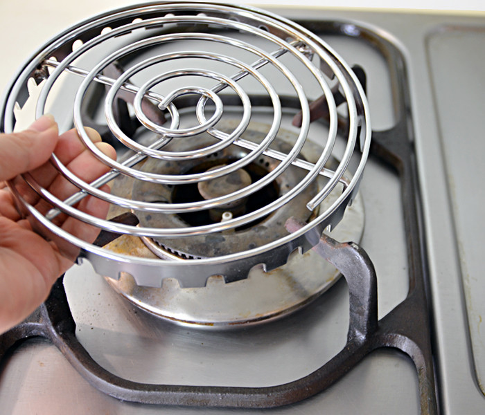 直接將聚熱圈調整方向崁入原有瓦斯爐架即可。