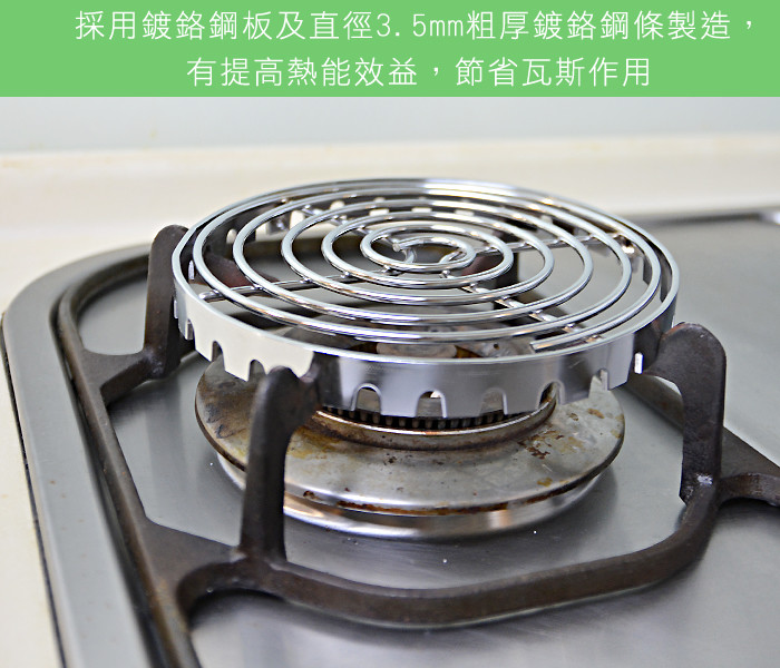 直接將聚熱圈調整方向崁入原有瓦斯爐架就可以。