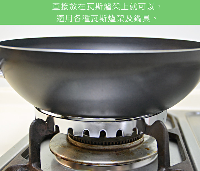 ■ 使用簡便,直接將『月陽台灣製專利瓦斯爐節能聚熱圈』直接放在瓦斯爐原有的瓦斯爐架上就可以,適用各種瓦斯爐架及鍋具。