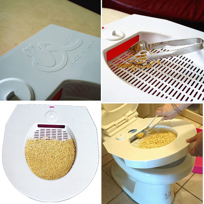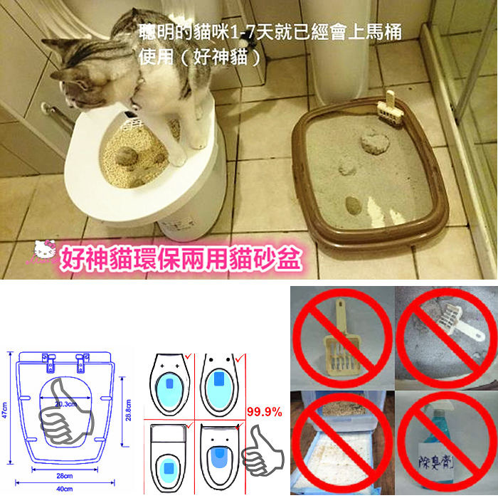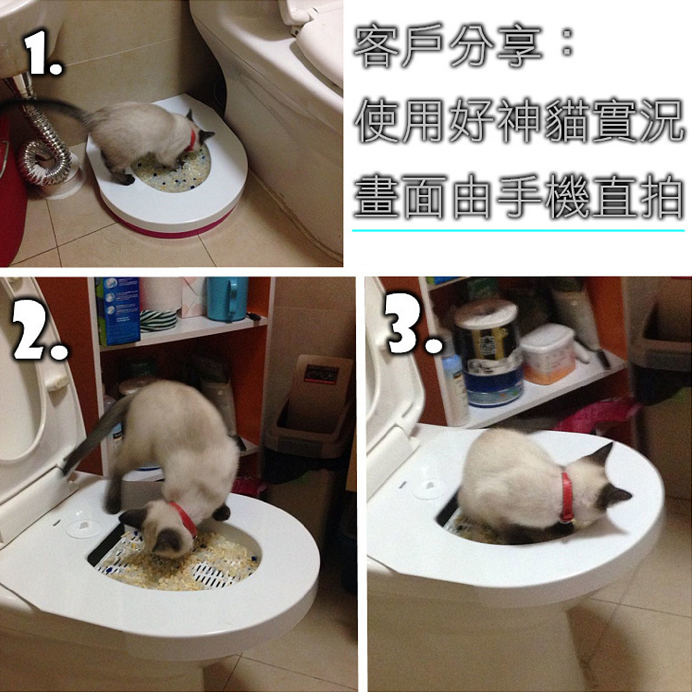 因為【好神貓貓咪如廁訓練器】本身就是一個高品質的雙層貓砂盆, 所以只要會用貓砂的貓就會使用!獨家可放馬桶上,也可放地上使用,不用挖洞, 堅實穩固! 不用一層一層的訓練~ 沒有彩色圈圈…一步驟一步驟的過渡期~