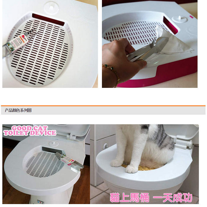因為一來那個訓練器質料很軟貓咪踩著不穩會害怕,二來那個訓練器要打洞開始換彩色圈圈時開洞越來越大貓咪怕大洞洞就不願再上馬桶了,這時就會到處亂拉,飼主疲於奔命..