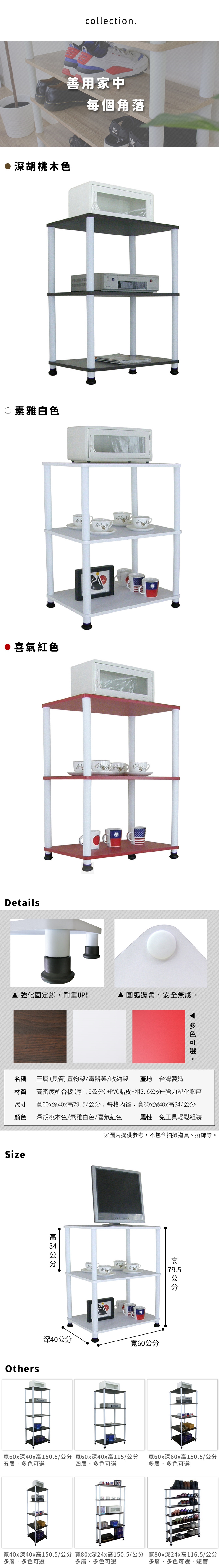 【Dr. DIY】寬60x深40x高79.5/公分-三層(長管)置物架/電器架/收納架(三色可選)