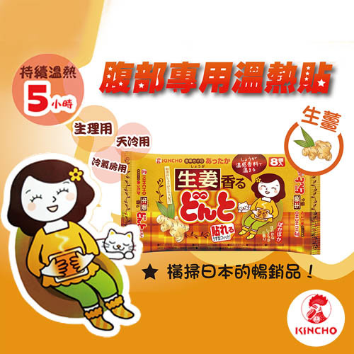 【日本金鳥KINCHO】腹部專用可貼式暖暖包-生薑(8入/包)