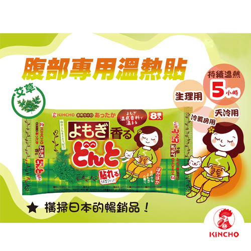 【日本金鳥KINCHO】腹部專用可貼式暖暖包-艾草(8入/包)