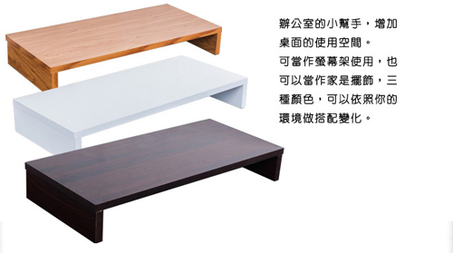 此款是特別針對小桌面,高工作量所設計出的收納架,專屬桌上收納空間,讓您以有限的空間,做最有規劃的收納。收納架有8公分高的空間及深度達24公分,可放置在電腦桌上當螢幕架或是印表機架,下層的空間可擺放鍵盤、檔案文件、文具用品及其他小物;擺在廚房裡可以將烤麵包機、熱水壺或是電鍋擺在收納架上,下面空間可放碗盤或調味料。無論搭配平面電腦桌,工作桌皆可搭配,實用性超高,經濟又實惠,真的是一舉兩得呢!超粗鋼管設計讓你擺放任何商品都安心,針對多種物品擺設皆可,日系風格讓你不管搭配何種風情或系統皆得宜,全程台灣生產製造,透明化生產履歷,鋼管電鍍材質超精緻,質感極佳,多樣化的日系色彩,搭配各式風格居家設計皆得宜,使用超方便,真的非常的推薦哦!