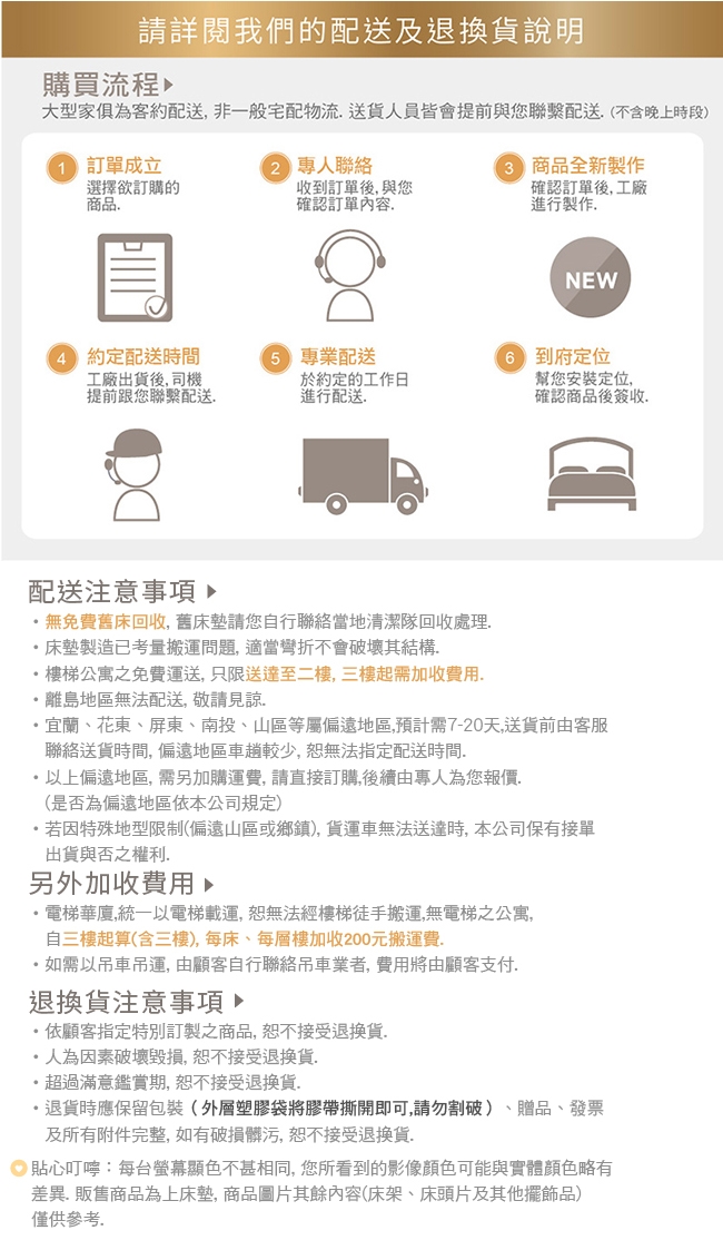 ‧樓梯公寓之免費運送,只限送達至二樓。