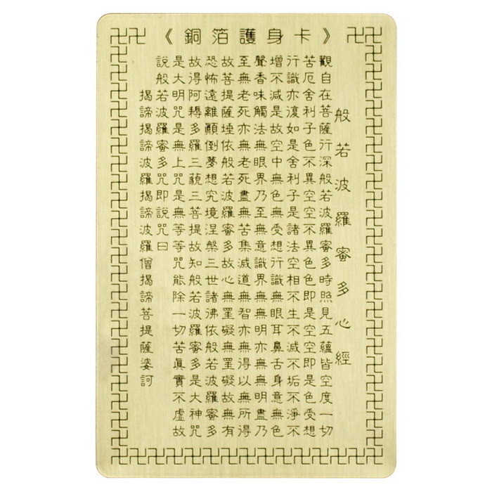 每張銅箔隨身護身卡都有經過護貝加強保護