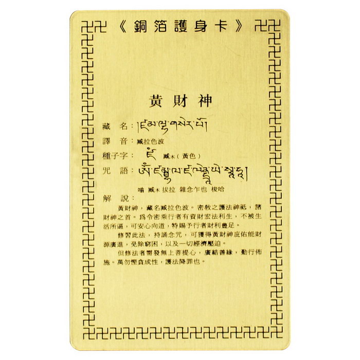【十相自在】銅箔隨身護身卡(黃財神)