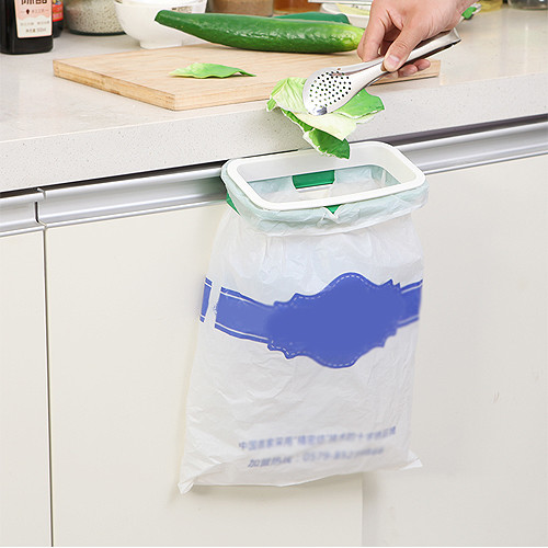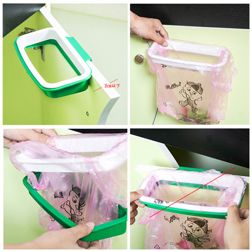 2.將塑膠袋套入白色內框架並將袋口反折。