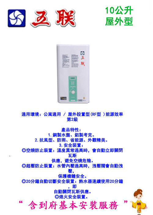 熱水器:購買前請先確認--住家使用瓦斯類型、使用空間(戶外或室內)、水流量大小,一經安裝恕不退換。