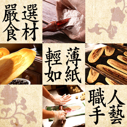 傳承最道地的傳統口味與專業的職人精神,每片手工牛舌餅,都是累積三十的經典傑作。