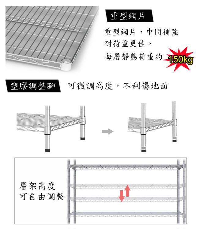 產品荷重:靜態平均荷重每層約150公斤左右