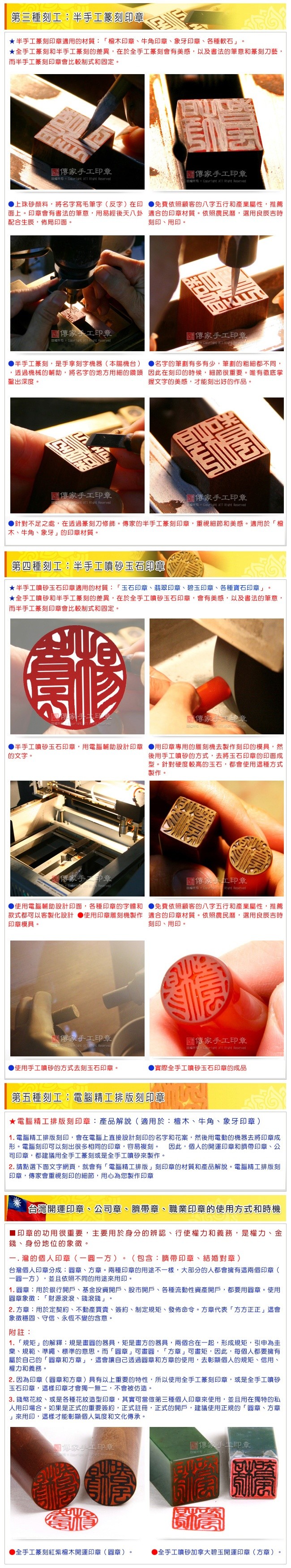 ★傳家手工印章有五種刻印工法。推薦您「全手工篆刻和全手工噴砂印章」:大器美觀,書法筆意, 篆刻刀藝,獨一無二,無法模仿。