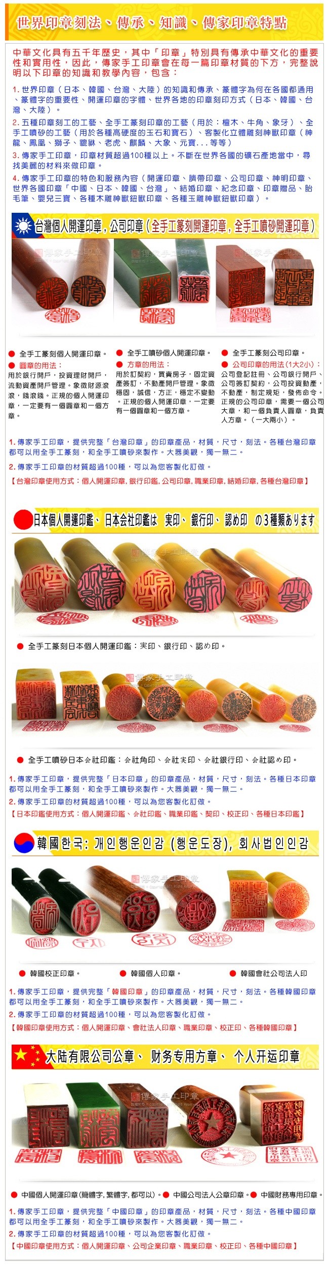 ★世界各國印章 「台灣、日本、韓國、中國」都能全手 工刻印」。各國語言的印章都能刻印。