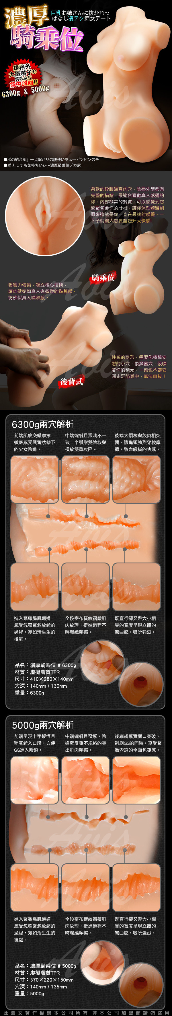 外形設計優美,線條流暢,豐滿的雙乳讓你盡情把玩絕對的手感;仿真3D構造女性陰部、嬌美陰唇的毫無保留的呈現,細緻嬌嫩,陰道設計窄緊,超柔軟的彈性體仿真得讓你無法分辨真假;豐滿的線條,性感的視覺效果……讓你隨時都有一個充滿激情與浪漫夜晚。還有喜歡更緊實的後庭性愛,絕不能錯過了,內部一樣也是3D構造喔